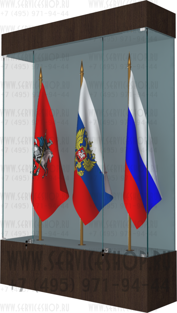 Застекленная витрина для демонстрации трех знамен