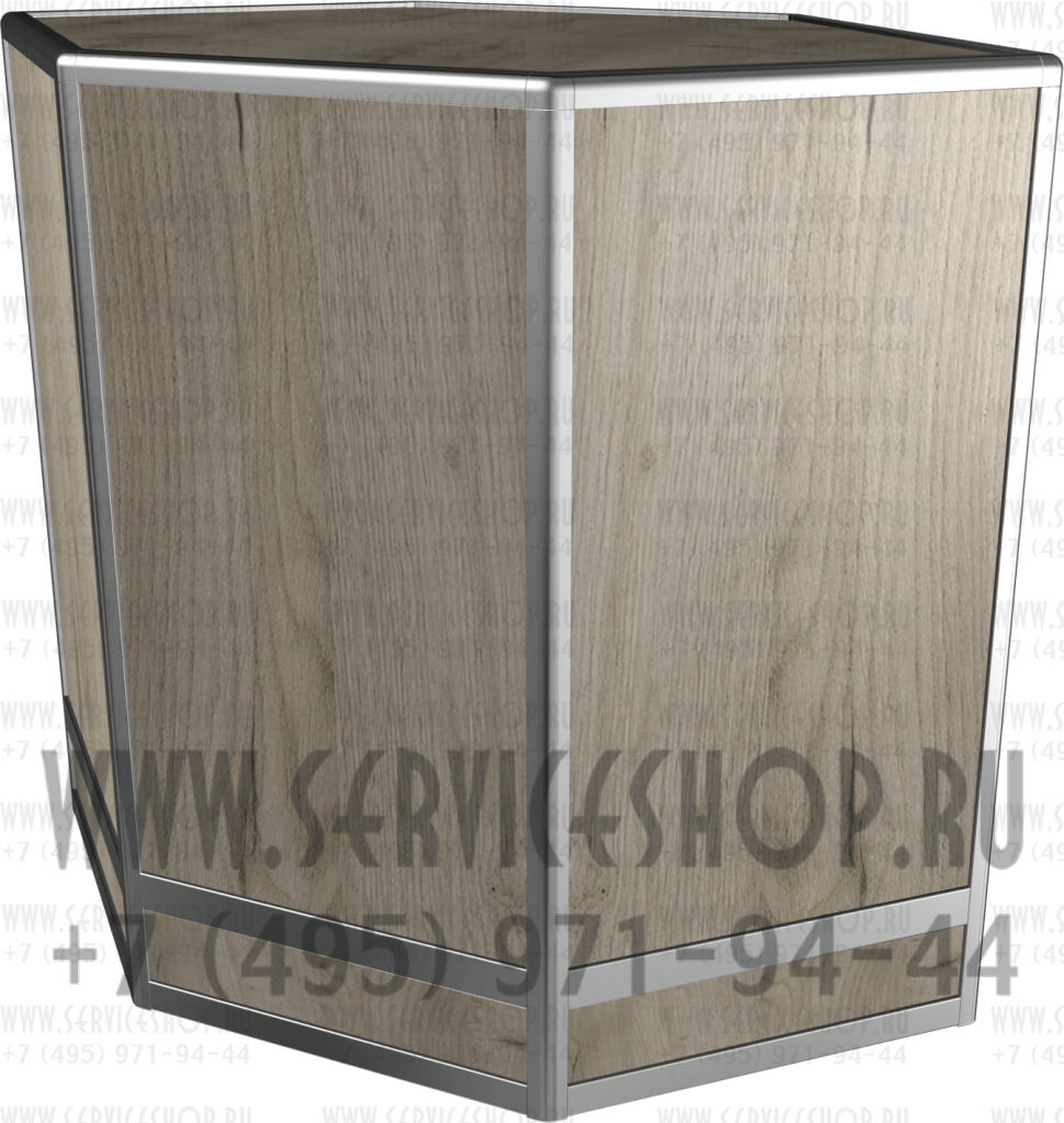 Рабочий прилавок шестигранник для торговли серии Старт модель ПО-19. Все прилавки могут оснащаться точечной подсветкой или лампами дневного света. Комплектация прилавков возможна с раздвижными и распашными дверцами, возможна установка экопанелей. В производстве прилавков используется только лучшая фурнитура.