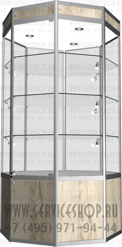 Восьмигранная витрина с тумбой из алюминиевого профиля