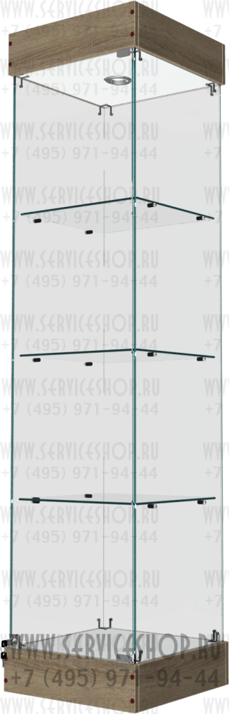 Стеклянная витрина квадрат коллекция Эко модель В-1 изготавливается из стекла марка м-1 толщиной 5мм.с полированными торцами в видимых частях ,крепление стекла на уголках, полки без регулировки. Нижняя и верхняя часть витрины изготавливается плиты ЛДСП. Витрина комплектуется подсветкой (светильниками) которая устанавливается в верхней части